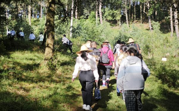在善洲林场的活动现场,党员同志们沿着林场步道实地走访,在杨善洲同志生前工作生活的旧址、事迹陈列馆内,认真聆听讲解员讲述“草鞋书记”扎根深山22年、带领群众植树造林的感人事迹。在一幅幅定格奋斗岁月的珍贵照片、一件件承载初心使命的旧物展品前,大家驻足沉思、轻声交流,深刻感悟杨善洲同志“坚守信念、对党忠诚,牢记宗旨、一心为民”的崇高精神,更坚定了“把群众需求放在心上”的行动自觉。随后,在林场郁郁葱葱的林海映衬下,鲜红的党旗下,全体党员整齐列队,举起右拳重温入党誓词,铿锵有力的誓言回荡在山林间,既是对革命先辈的深切致敬,更是对初心使命的庄严承诺,进一步凝聚了以实际行动践行“国家富强、民族振兴、人民幸福”中国梦的奋进力量。