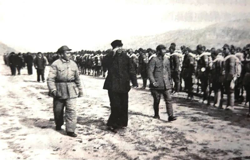 1944年11月,毛泽东和朱德由王震陪同,在延安机场检阅南下支队