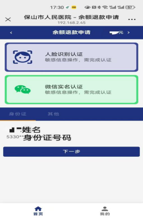 在“服务官网”中找到“余额退款”选项,点击进入余额退款申请页面; 选择“微信实名认证”,点击“下一步”;